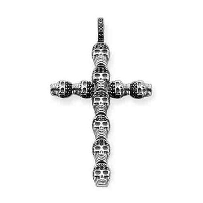 Thomas Sabo Rebel at heart 黑鋯石骷髏十字純銀墜-35x55mm