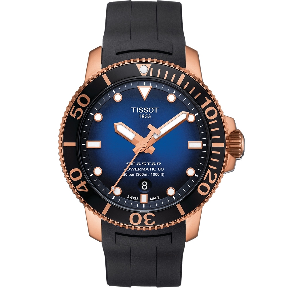 TISSOT 天梭 官方授權 Seastar 神祕藍海星300米潛水機械錶(T1204073704100)43mm/原廠膠帶組 product image 1