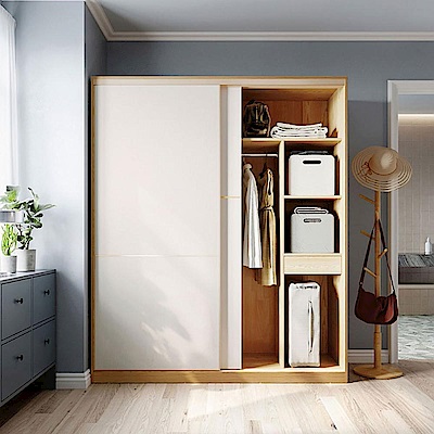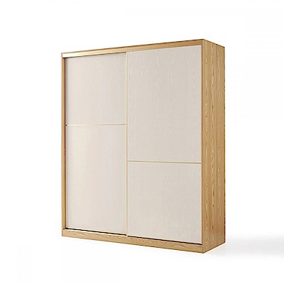 hoi! 林氏木業現代簡約滑門1.8M衣櫃 JC3D-A原木色+白色 (H014287769)