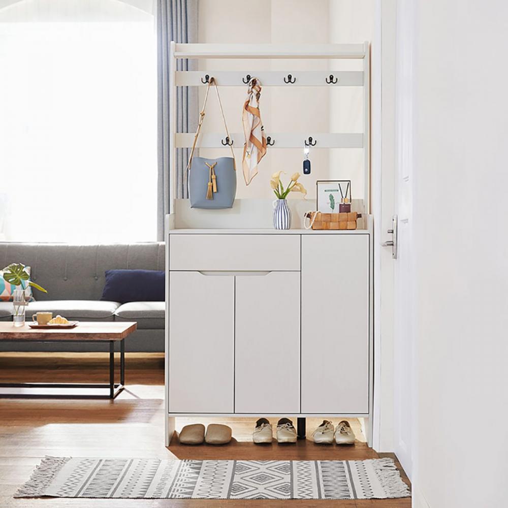 hoi! 林氏木業美式現代小戶型附掛勾雙門對開0.9M鞋櫃 JS2N-B 白色 (H014287809) product image 1