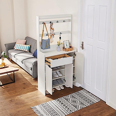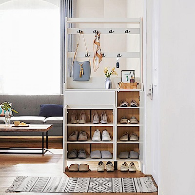 hoi! 林氏木業美式現代小戶型附掛勾雙門對開0.9M鞋櫃 JS2N-B 白色 (H014287809)
