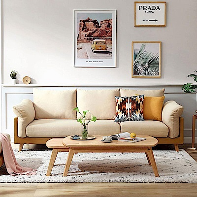 hoi! 北歐雙色三人布沙發 S023-米黃色 (H014264243)