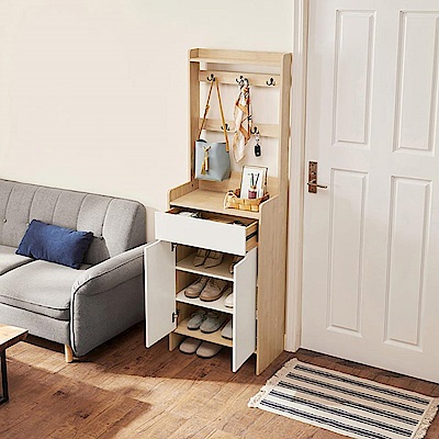 hoi! 林氏木業美式現代小戶型附掛勾雙門對開0.6M鞋櫃 JS2N-A 原木色+白色 (H014287806)