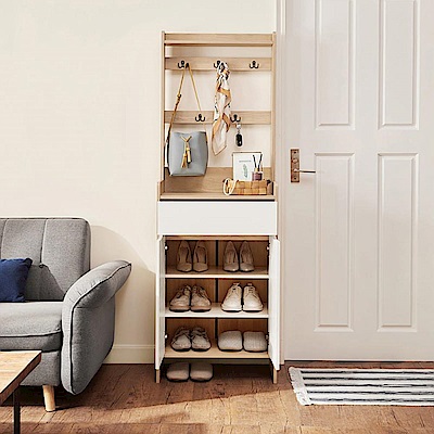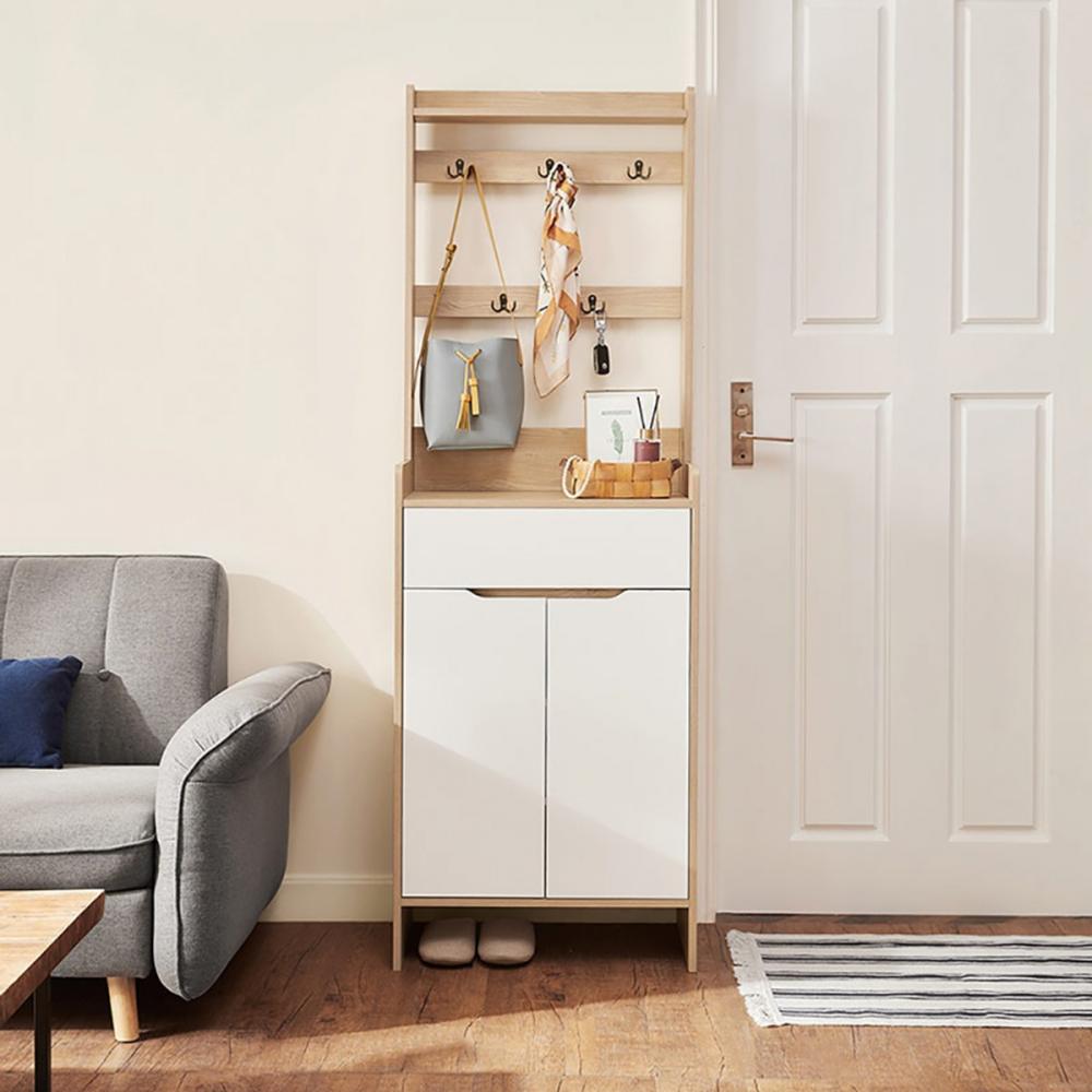 hoi! 林氏木業美式現代小戶型附掛勾雙門對開0.6M鞋櫃 JS2N-A 原木色+白色 (H014287806) product image 1
