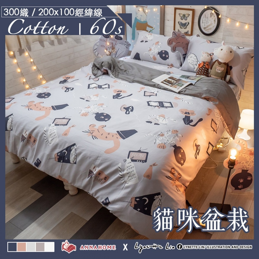 hoi! 【棉床】Life素色系列- 貓咪盆栽  100%精梳棉(60支) 單人床包+枕套 (H014316479) product image 1