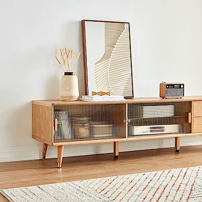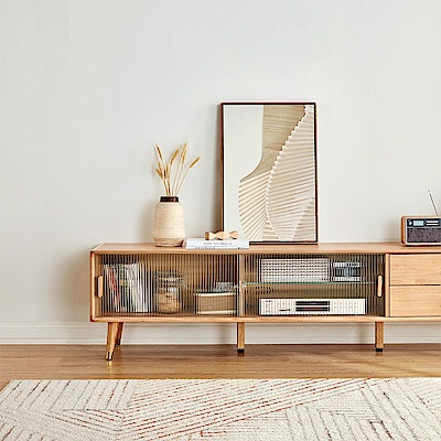 hoi! 林氏木業北歐儲物玻璃滑門1.8M電視櫃 JU3M (H014317955)