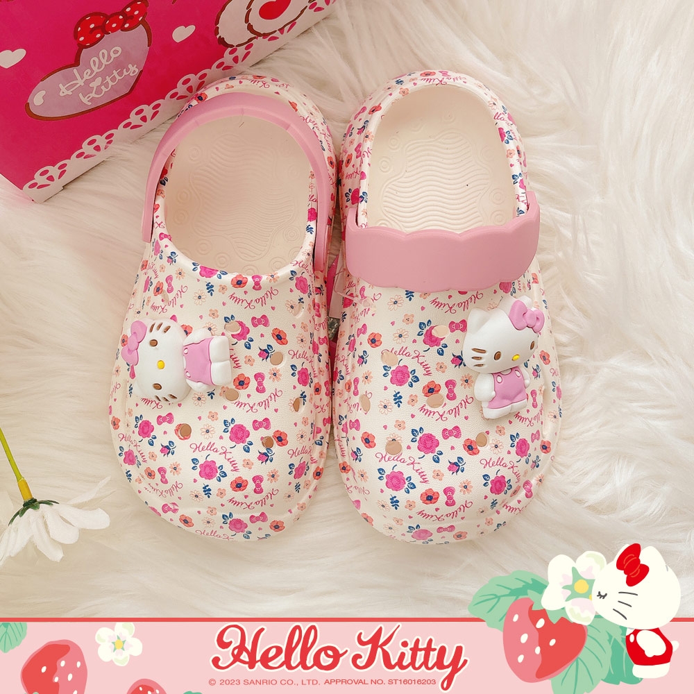 Ann’S正版三麗鷗授權-HELLO KITTY 甜蜜花園可兩穿防水洞洞鞋童鞋-白