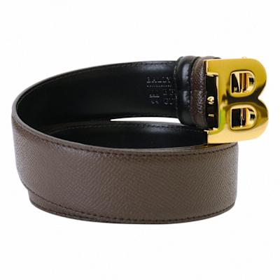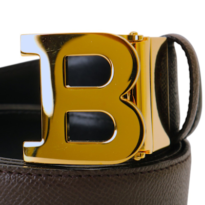 BALLY-金屬銀B LOGO 防刮皮革皮帶110cm(咖x內黑) product image 1