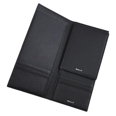BALLY TRAVELWALL 品牌LOGO荔枝牛皮對開式手拿/長夾(附護照夾 黑)
