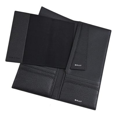 BALLY TRAVELWALL 品牌LOGO荔枝牛皮對開式手拿/長夾(附護照夾 黑) product image 1
