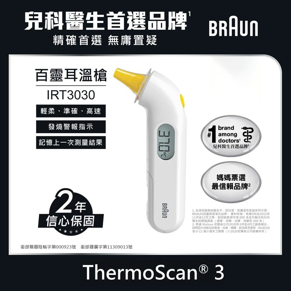 【BRAUN百靈】耳溫槍 IRT3030(內含21個耳套)