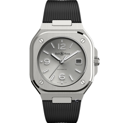 Bell & Ross BR05時尚機械錶-銀色x黑膠帶/40mm