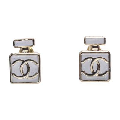 CHANEL 經典雙C LOGO香水造型琺瑯針式耳環(白/金色) product image 1
