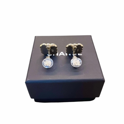CHANEL 香奈兒 方形花瓣造型雙C  LOGO夾式耳環(黑金) product image 1