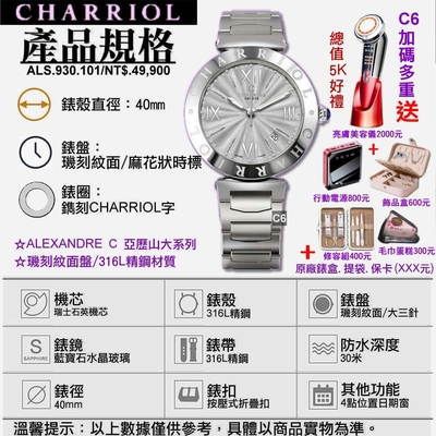 CHARRIOL夏利豪 Alexandre C 亞歷山大精鋼璣刻太陽紋面男款40㎜ C6(ALS.930.101) product image 1