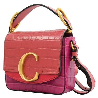 CHLOE C BAG系列拼色鱷魚紋牛皮兩用翻蓋斜背包(MINI/紫紅) product image 1