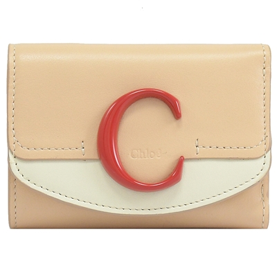 CHLOE C Bag系列撞色款小牛皮三折零錢短夾(裸膚色)