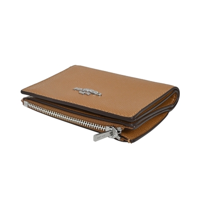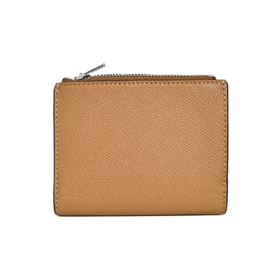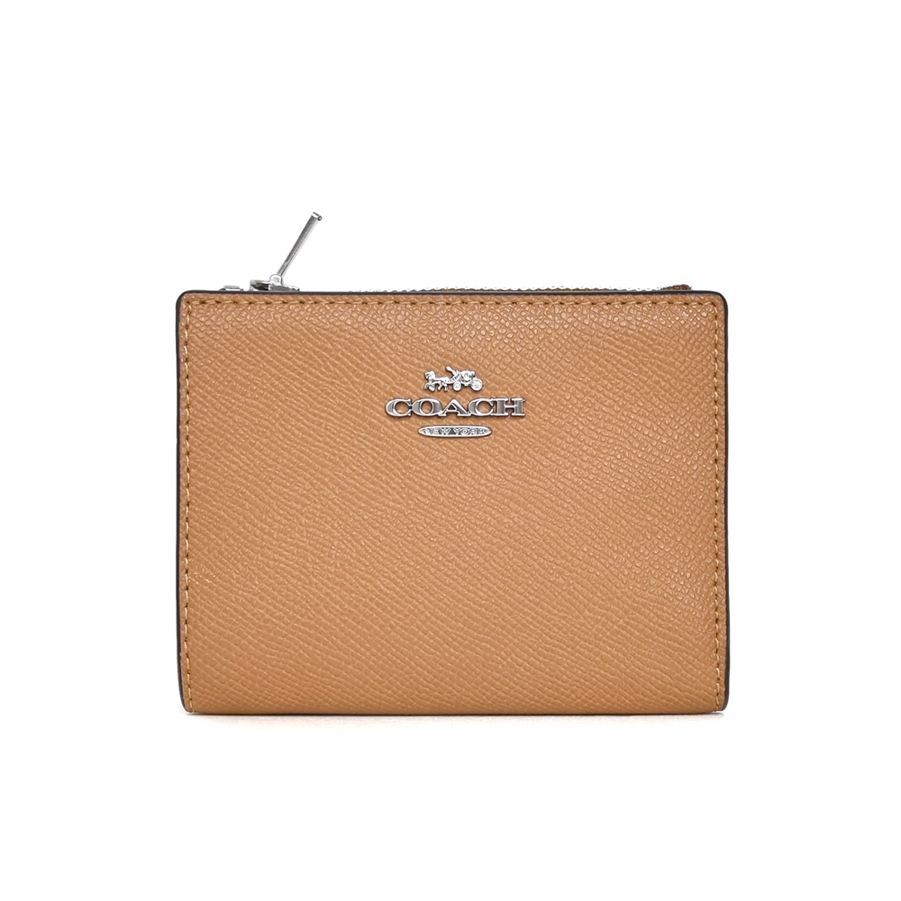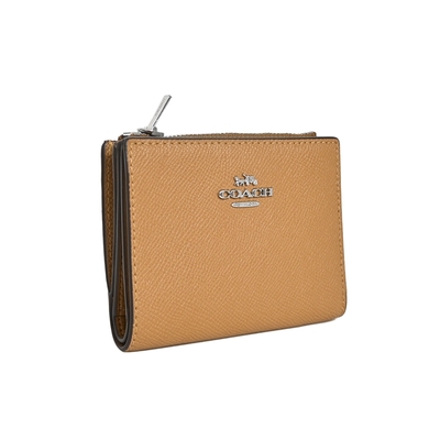 COACH牛奶糖色防刮全皮字牌釦式雙摺短夾 product image 1