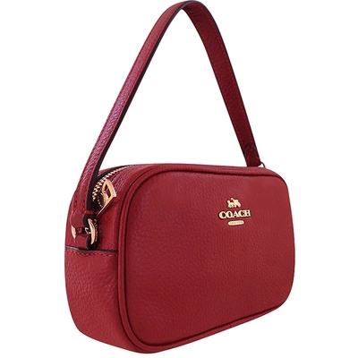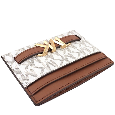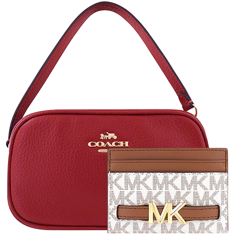 COACH 紅色JAMIE荔枝紋皮革手提包+MICHAEL KORS Reed 象牙白色LOGO PVC證件名片夾
