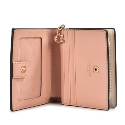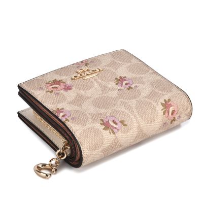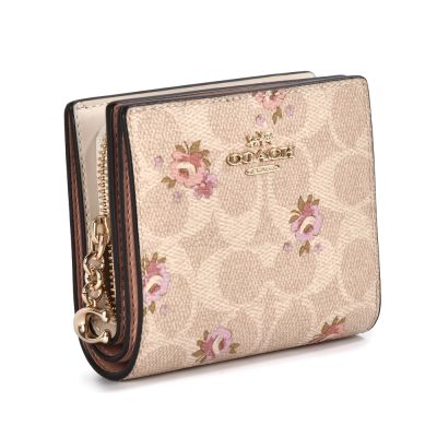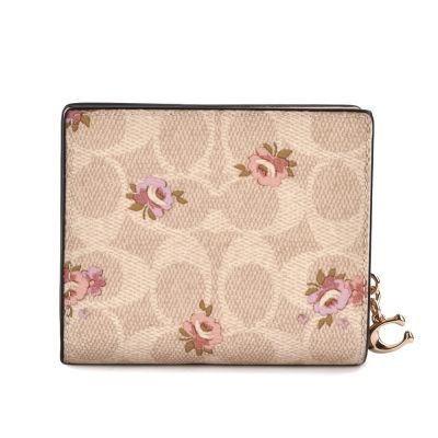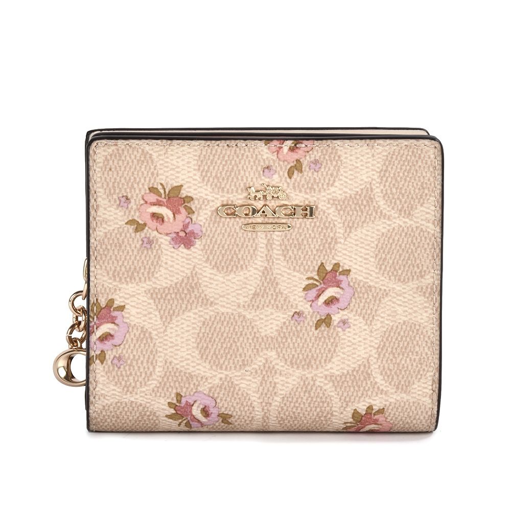 COACH C吊飾 滿版C LOGO花卉圖案 PVC皮革壓釦小短夾-卡其色 product image 1