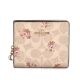 COACH C吊飾 滿版C LOGO花卉圖案 PVC皮革壓釦小短夾-卡其色