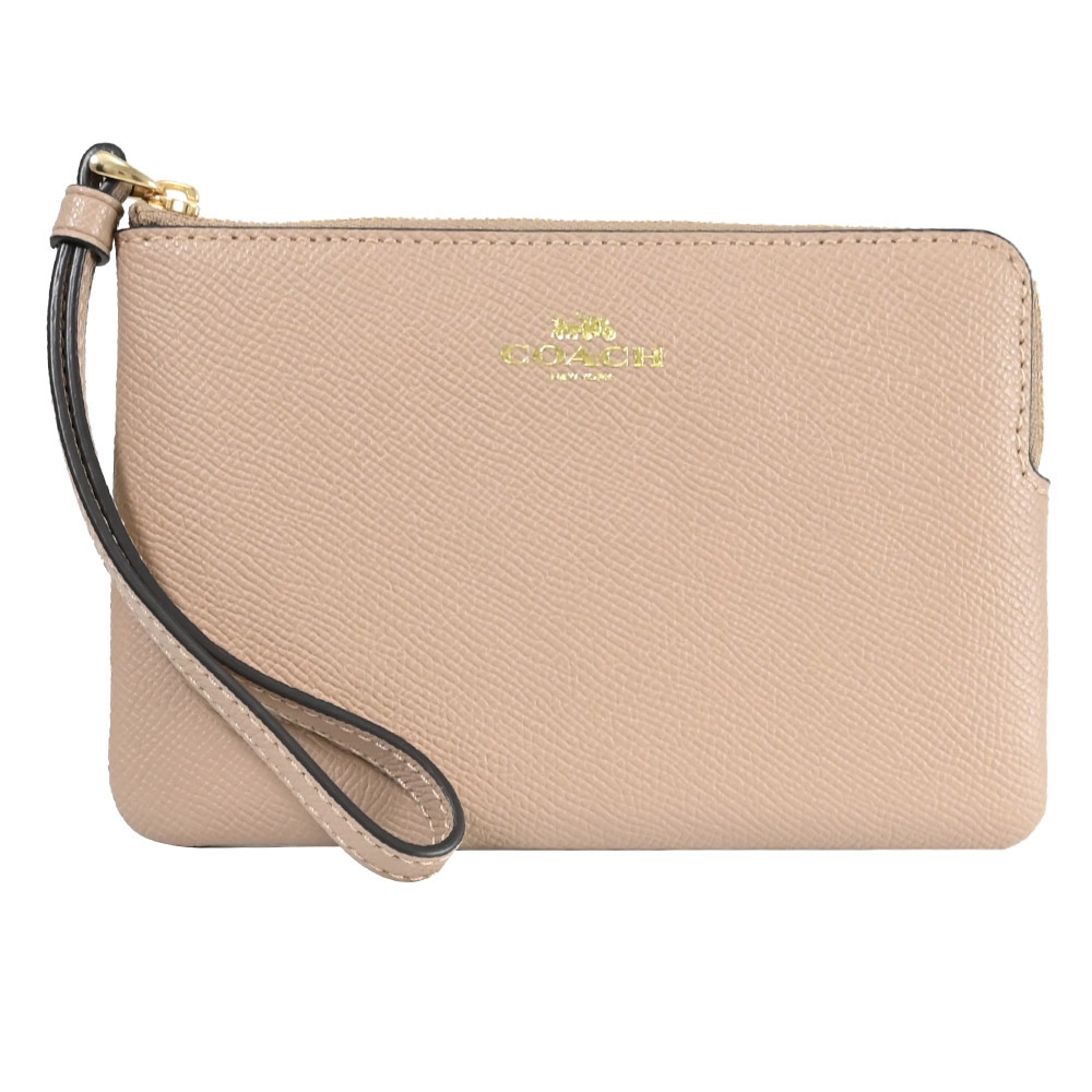 COACH Corner Zip 經典荔枝皮革簡約拉鍊小手拿包(淺褐色)
