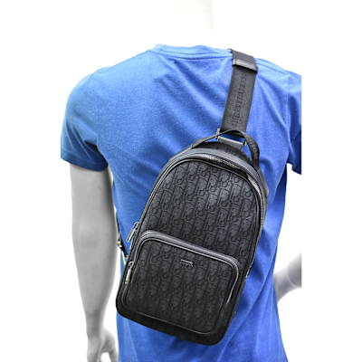 DIOR 迷你RIDER系列經典OBLIQUE緹花帆布單肩帶後背包(黑色)