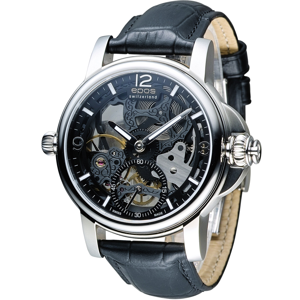 EPOS 愛寶時 巴賽爾系列三次元限量腕錶-黑x銀色/45mm