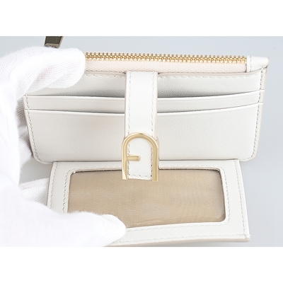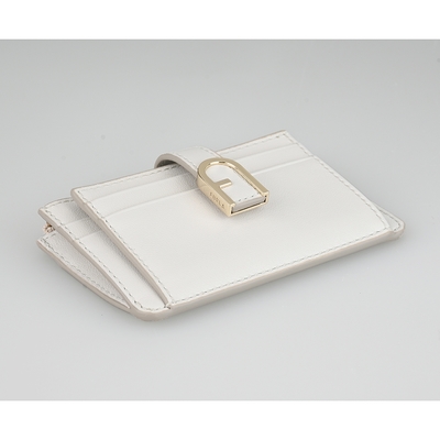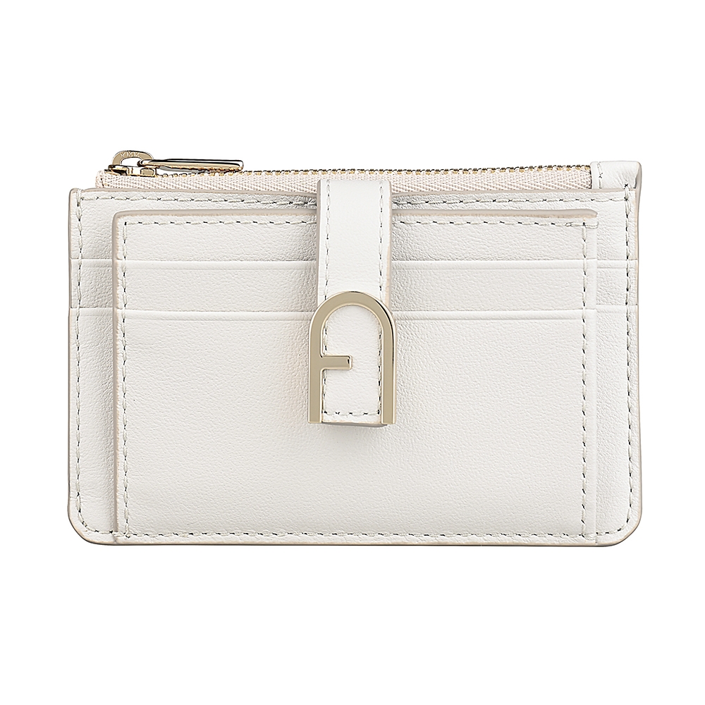FURLA FLOW拱門金屬釦LOGO小牛皮5卡拉鍊零錢卡夾(棉花糖白) product image 1