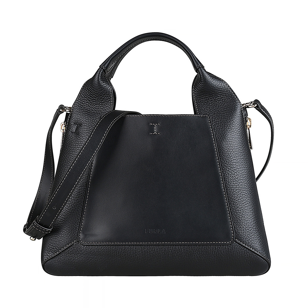 FURLA Gilda壓印LOGO側邊拉鍊開口設計小牛皮扣式手提斜背托特包(中/大理石黑) product image 1