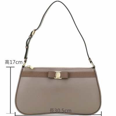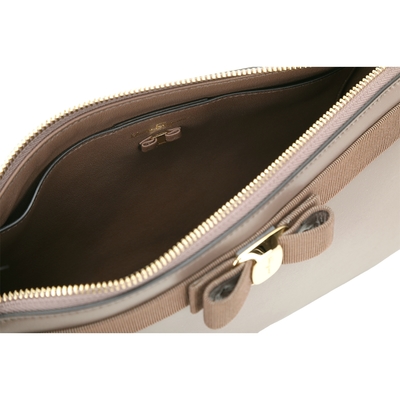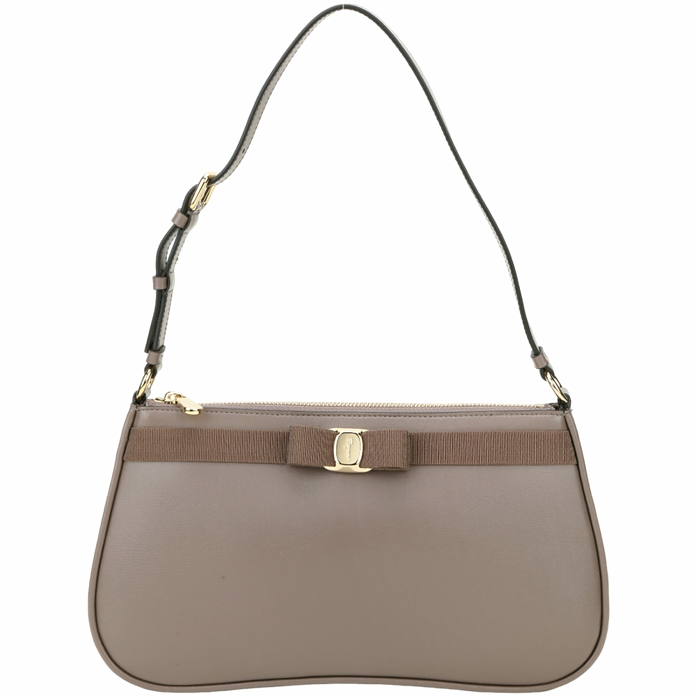 Salvatore Ferragamo VARA 羅緞蝴蝶結飾牛皮肩背腋下包(灰棕色)