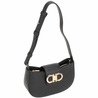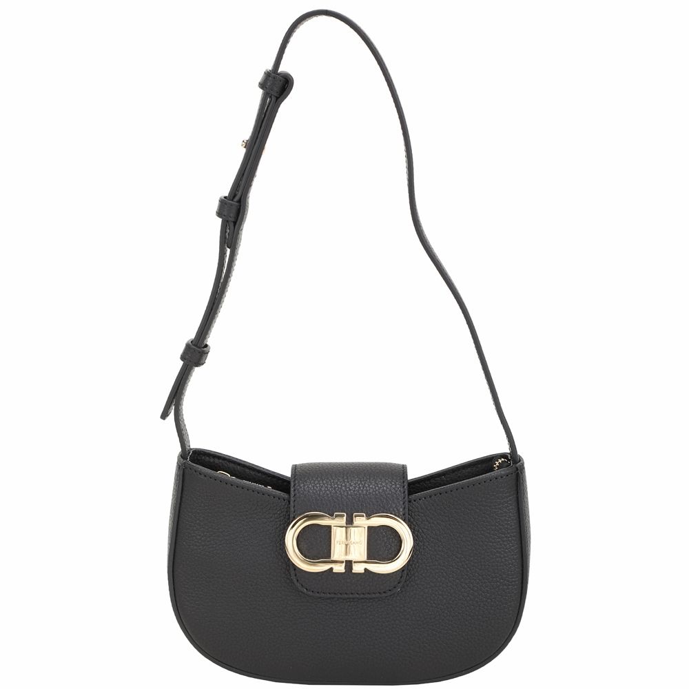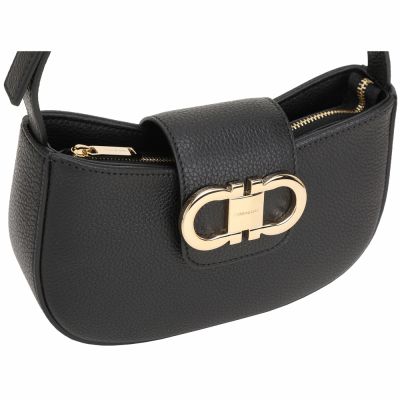 Salvatore Ferragamo Double Gancini 馬蹄標誌壓紋小牛皮肩背腋下包(黑色) product image 1