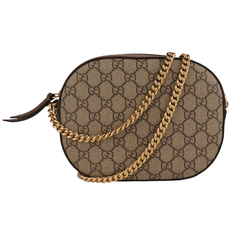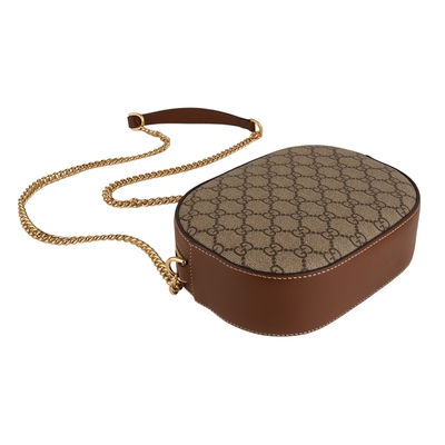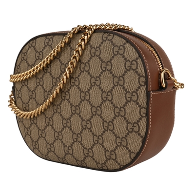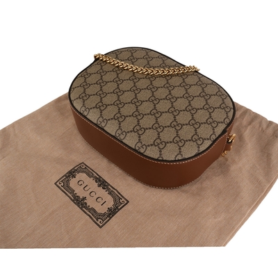 GUCCI古馳 Monogram Supreme鍊帶橢圓斜背包(卡其) product image 1