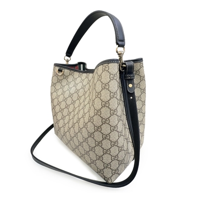 【GUCCI 古馳】815103 經典GG Emblem系列手提斜背兩用水桶包(藍黑色) product image 1