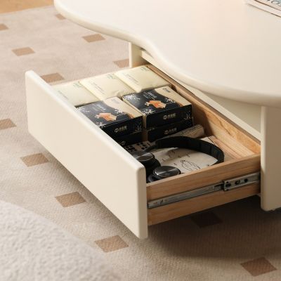 源氏木語雲朵奶油風橡膠木實木移動抽屜收納茶几1.2MY246J01-(H014407109)