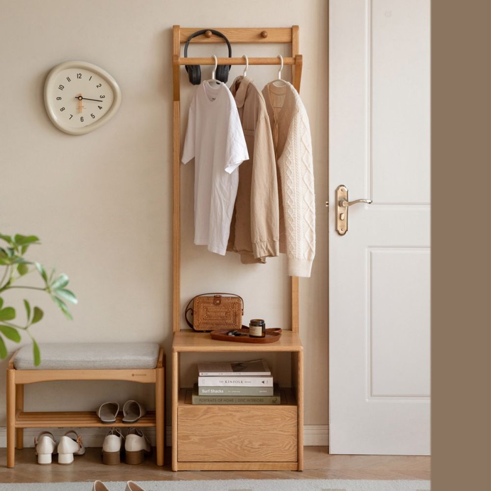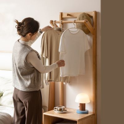 源氏木語豆乳橡木實木原木色床頭櫃掛衣架0.5MY00I28-(H014413237)