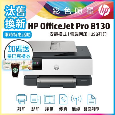 HP OJ Pro 8130 雙面列印 彩色無線多功能事務機《汰舊換新機+送星巴克咖啡禮券》