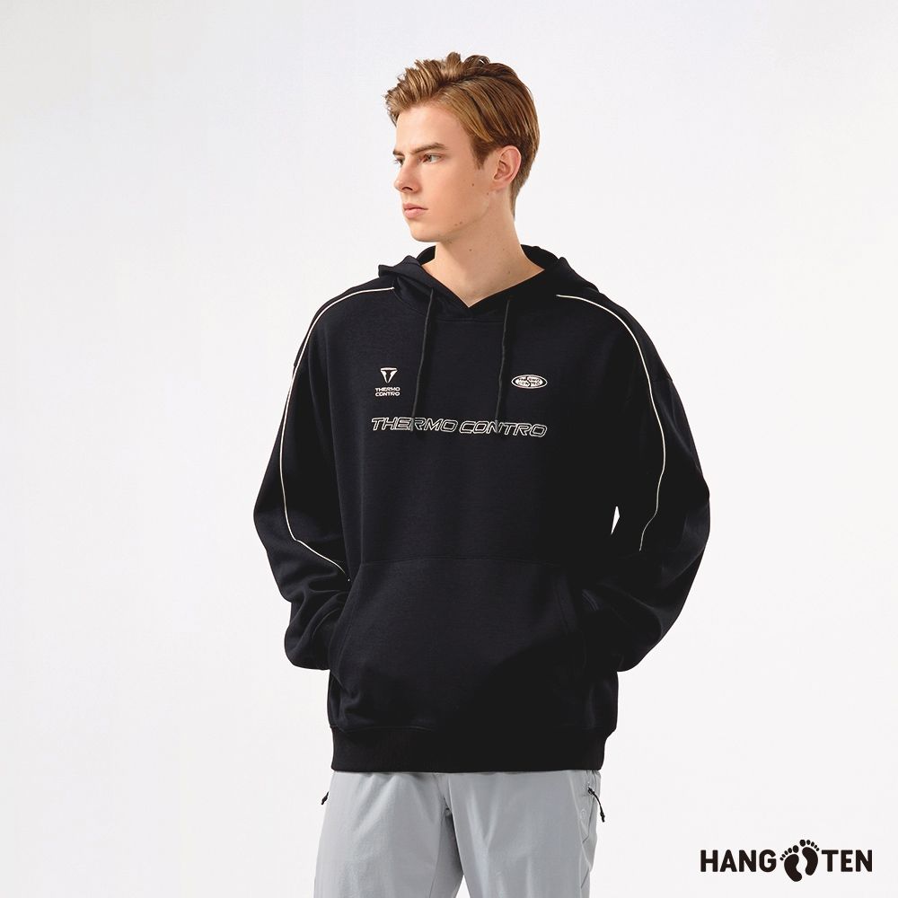 Hang Ten-男裝-空氣層抗菌除臭撞色出芽帽T-黑色