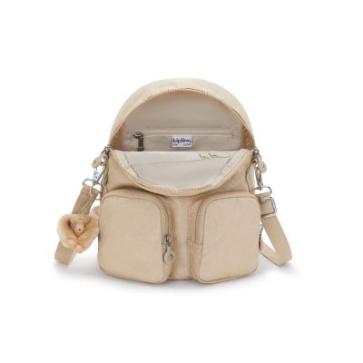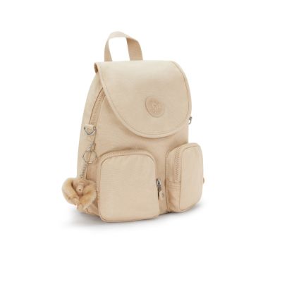 Kipling (網路獨家款)亮米色掀蓋後背包-FIREFLY UP