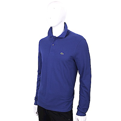 LACOSTE Classic Fit 純棉藍色鱷魚標誌長袖POLO衫(男款)