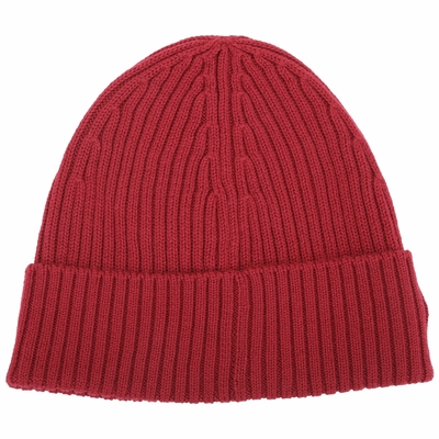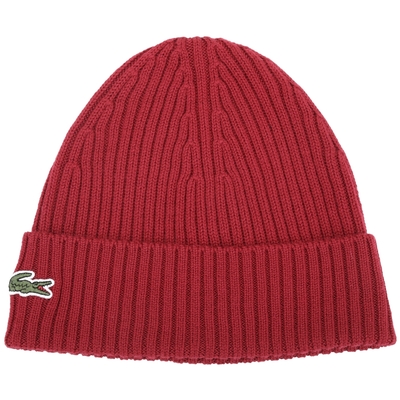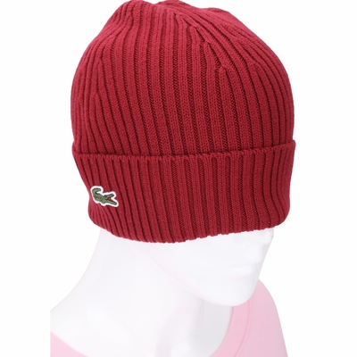 LACOSTE 鱷魚徽標補丁紅色針織反摺羊毛帽 product image 1