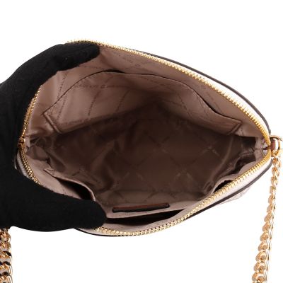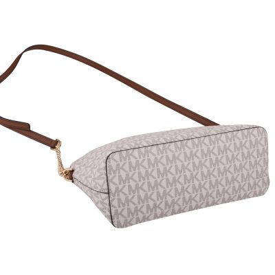 MICHAEL KORS 滿版防刮LOGO 前交叉貝殼型斜背包(白x駝邊)小 product image 1