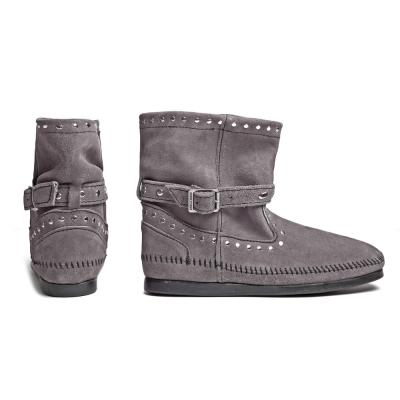 MINNETONKA-STUDDED STRAP鉚釘繞帶短靴-灰色