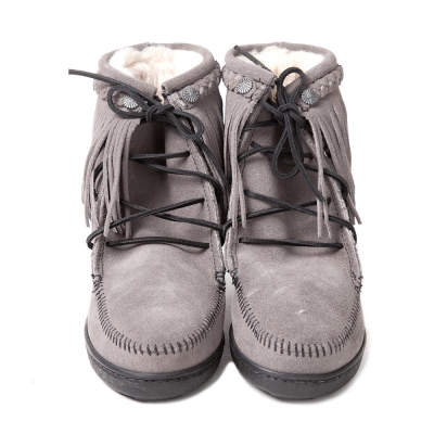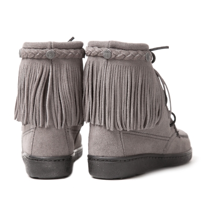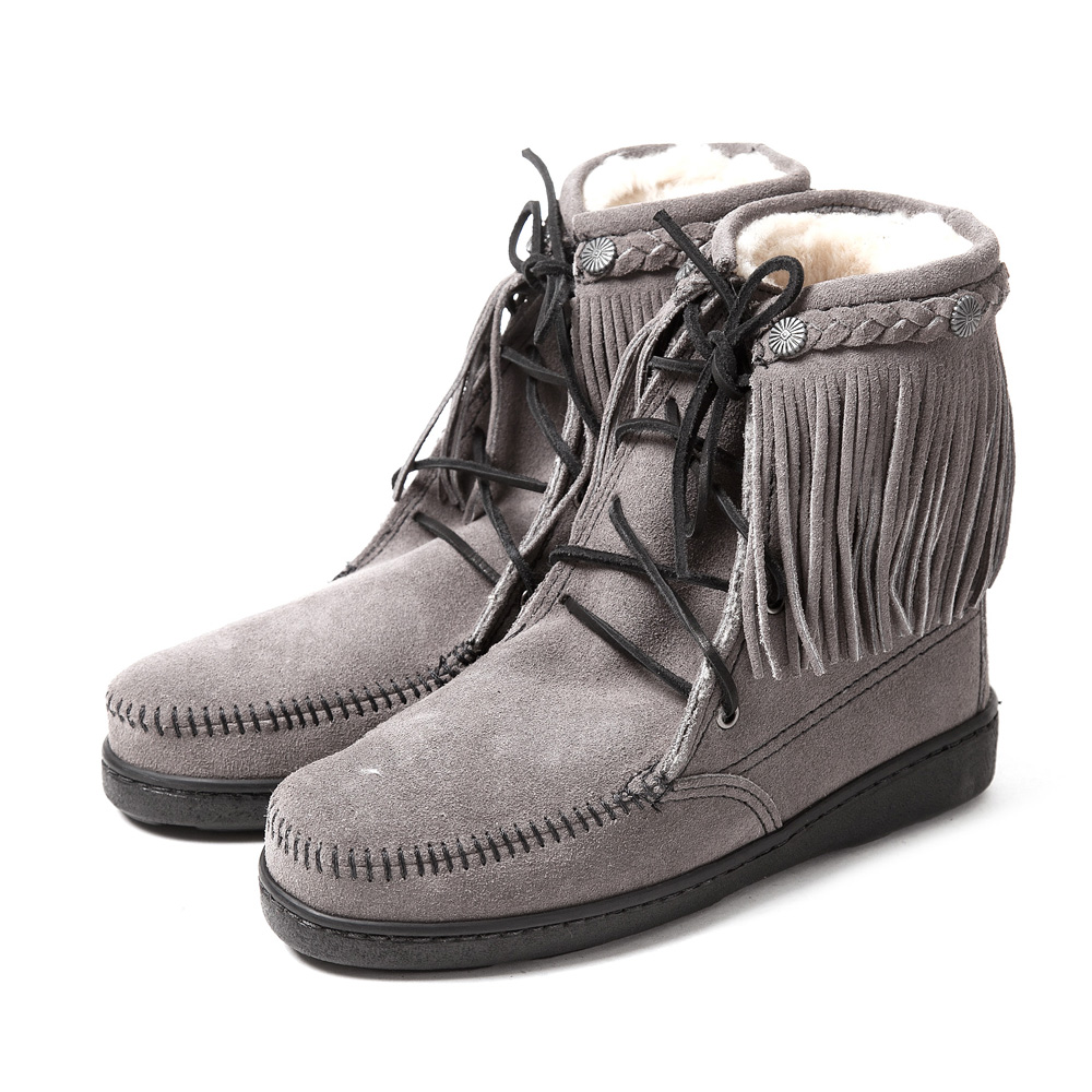MINNETONKA-SHEEPSKIN防潑水綁帶流蘇羊毛雪靴-灰色 product image 1