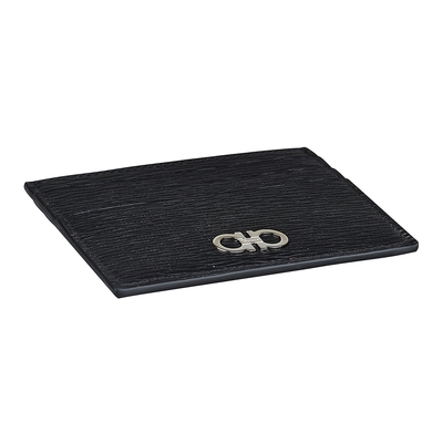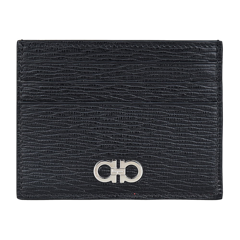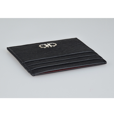 SALVATORE FERRAGAMO GANCINI金屬雙環LOGO拼色水波紋小牛皮6卡男士卡夾(黑x菲拉格慕紅) product image 1
