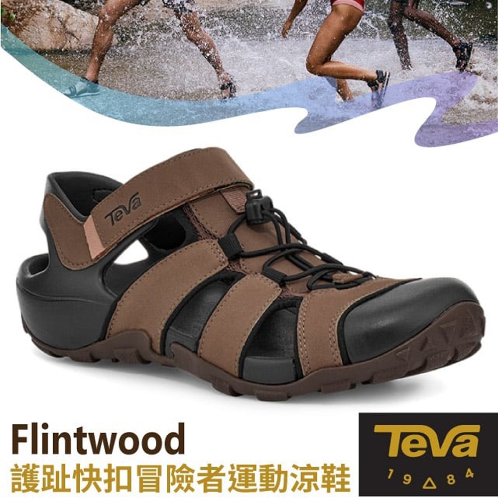 TEVA 男 Flintwood 護趾快扣冒險者運動涼鞋(含鞋袋).抗菌溯溪鞋_咖啡色