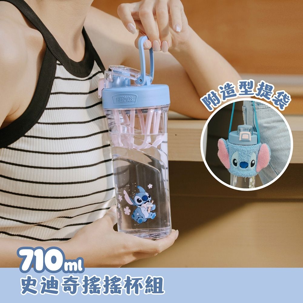 【THERMOS膳魔師】史迪奇彈蓋搖搖杯限量組合(TP4086STH-BL+Z-BTP4086STH-BL)