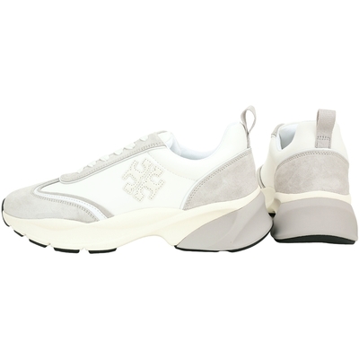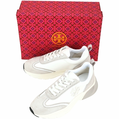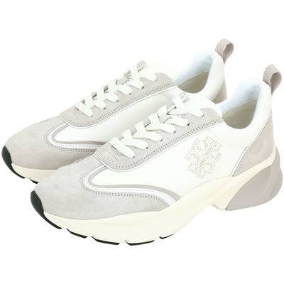 TORY BURCH Good Luck 新版拼接麂皮尼龍繫帶運動鞋(白色)
