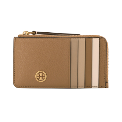 TORY BURCH Robinson 拼色皮革L型拉鍊卡夾(駝色) product image 1