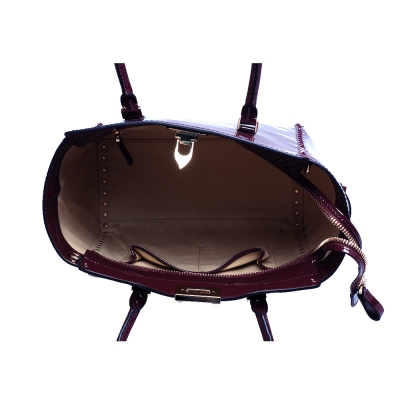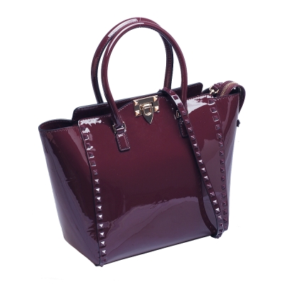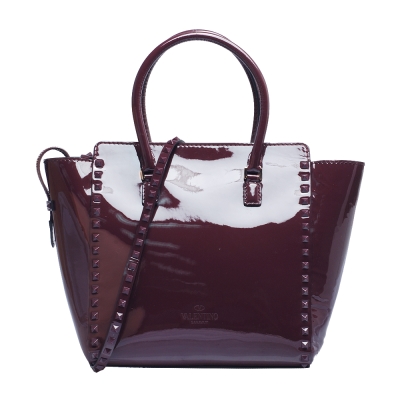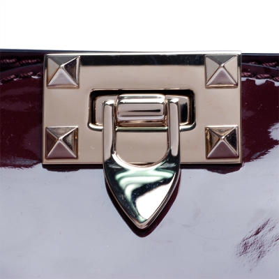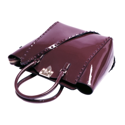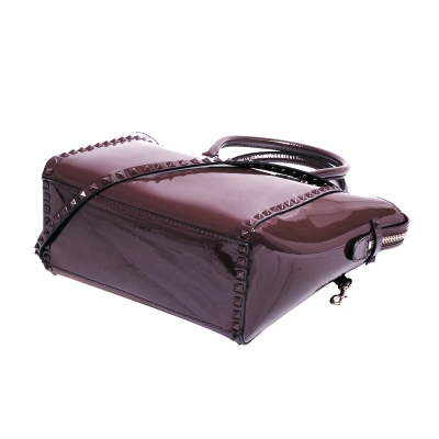 VALENTINO DOUBLE HANDLE BAG鉚釘小牛漆皮金屬釦拉鍊兩用包(藕紫) product image 1